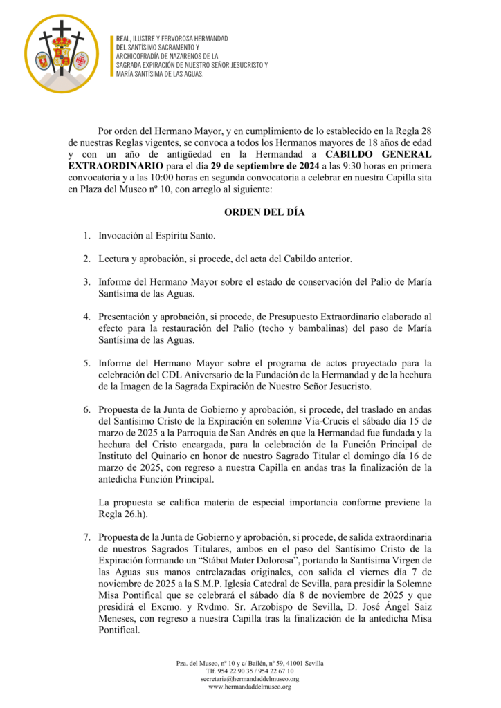 Convocatoria del Cabildo General Extraordinario